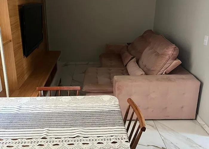 Apartamento Confortavel Completo No Bairro Sao Pedro comes equipped with self-catering amenities, including a kitchen, and a dining area for guests to enjoy. Sports enthusiasts will appreciate activities like ping pong offered at the accommodation.